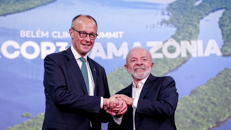 Bundeskanzler Merz mit Brasiliens Präsident Lula auf der Weltklimakonferenz: Bloß schnell wieder weg?