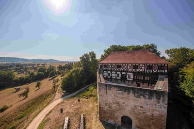 Foto (Stadt Göppingen): Der Staufer-Express kommt auch beim Schloss Wäscherburg vorbei.