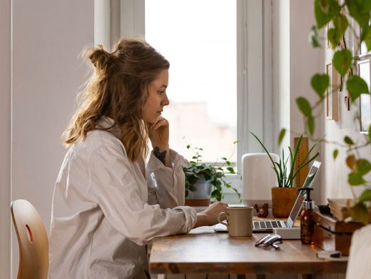 Frau arbeitet im Homeoffice: EU-Kommission schlägt mindestens einen Tag vor.