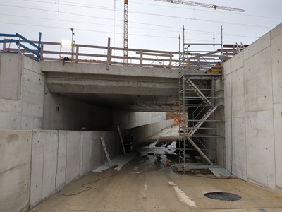 Die insgesamt neun Blöcke der neuen Bahnunterführung sind fertig betoniert. Bis auf kleinere Betonarbeiten ist damit die Betonage der Mühlbachtrasse abgeschlossen. Bei der gemeinsamen Baumaßnahme von Stadt und Deutscher Bahn geht es nach der Winterpause in den Endspurt, sodass die neue Verkehrsverbindung im Sommer eröffnet werden kann. In den vergangenen Monaten wuchs die neue Mühlbachtrasse ...